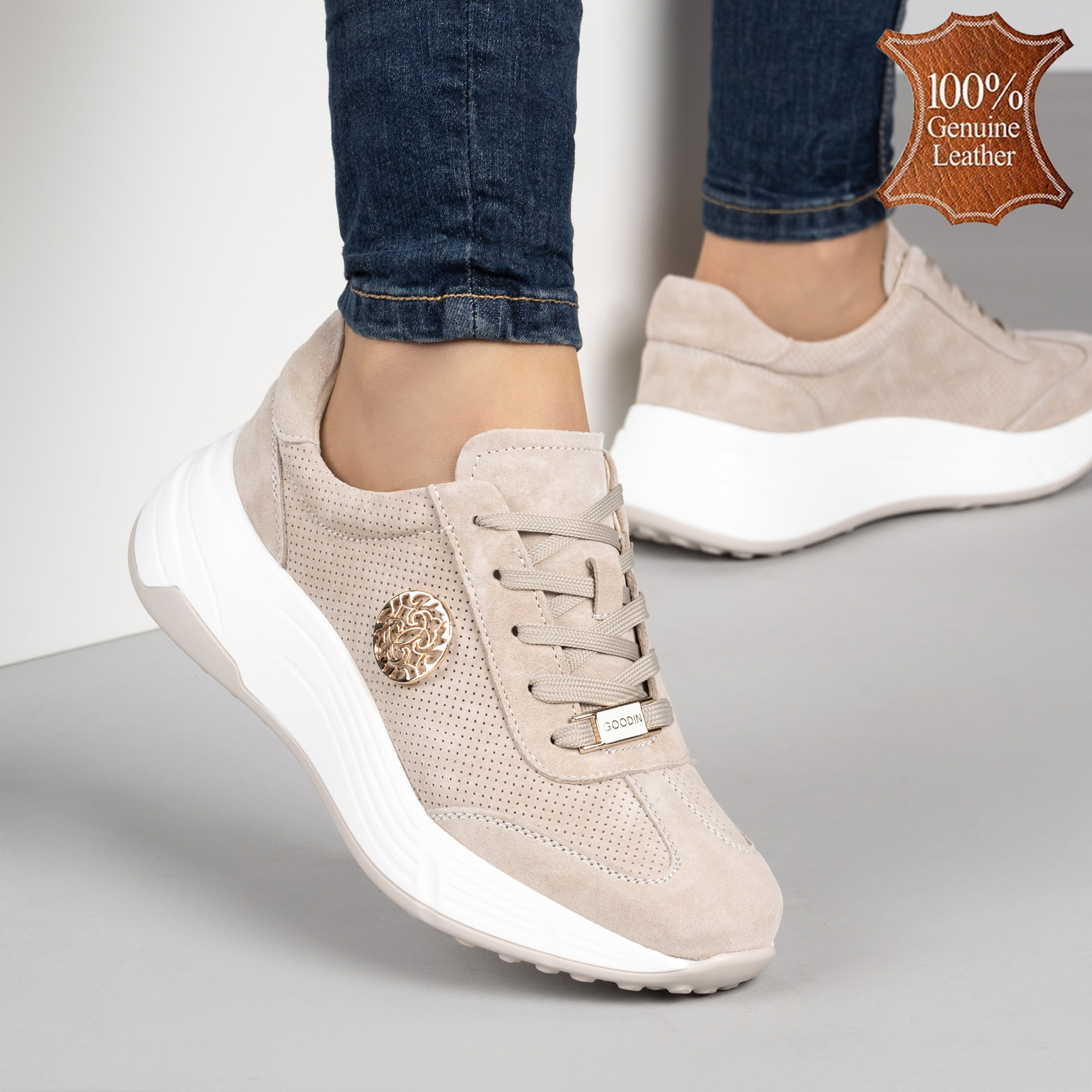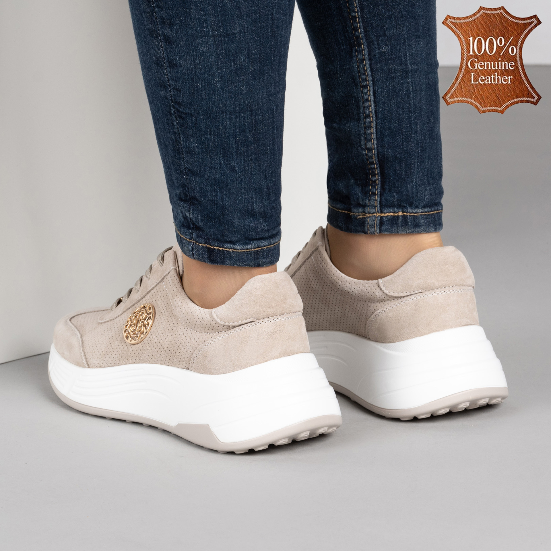 Ако маратонките можеха да говорят, тези бежови красавици щяха да шепнат: „Защо да избереш между стил и комфорт, когато можеш да имаш и двете?“ Изработени от естествена кожа, те са като вашият най-добър приятел – винаги до вас, поддържат краката ви свежи и удобни, докато вие превземате света. Идеални за дълги разходки, забързани дни в офиса или просто за разкрасяване на дънките ви. Побързайте, защото краката ви вече мечтаят за този хитов комфорт!