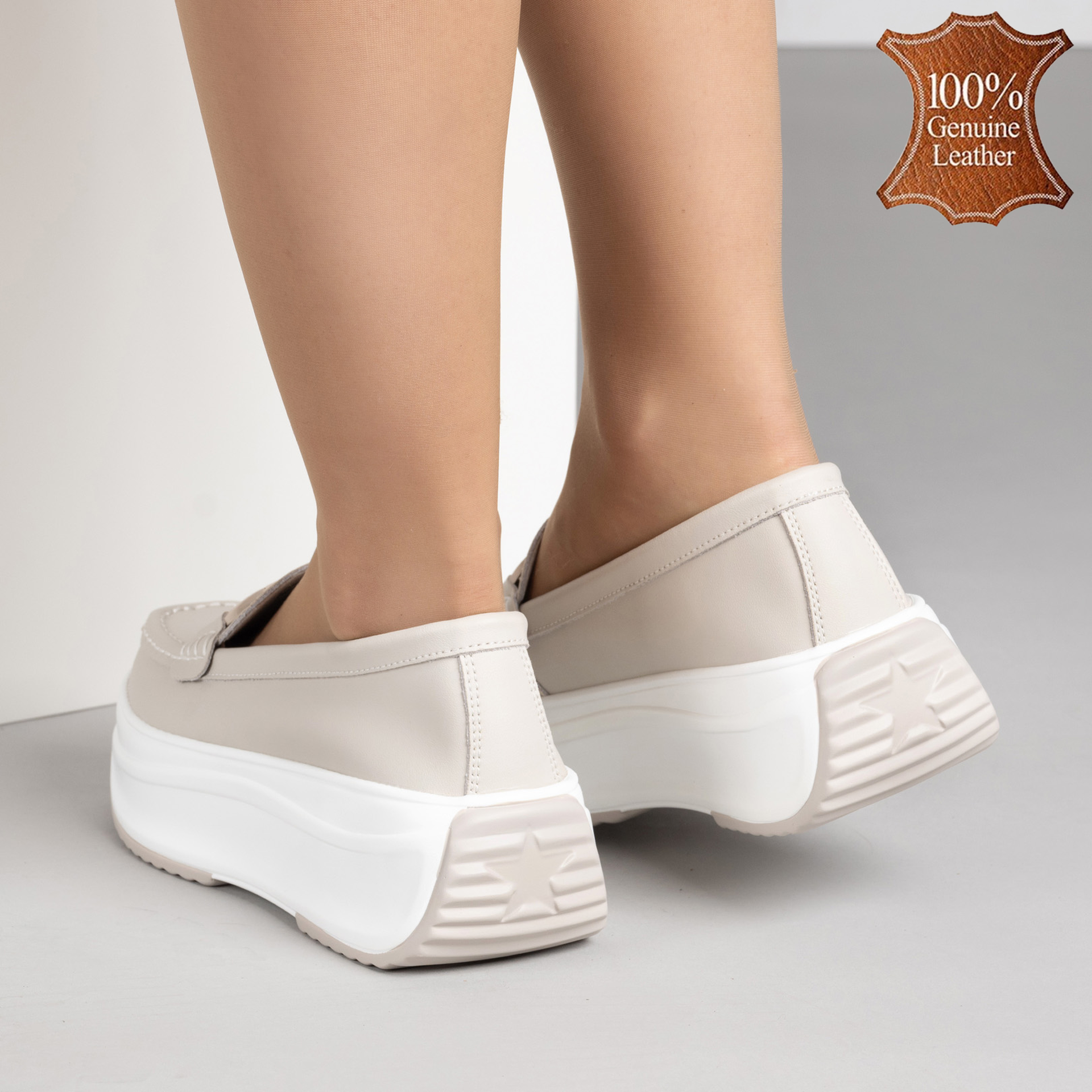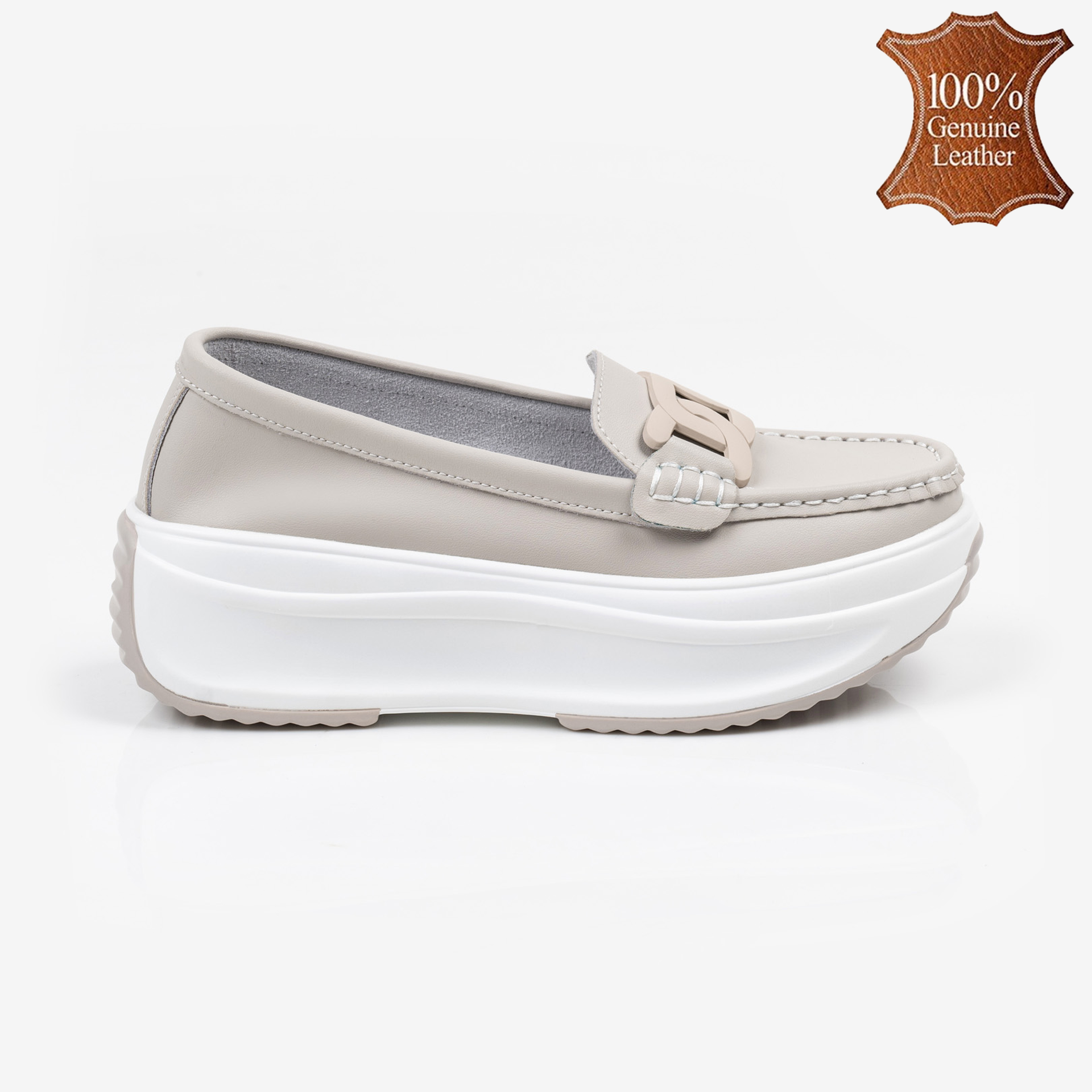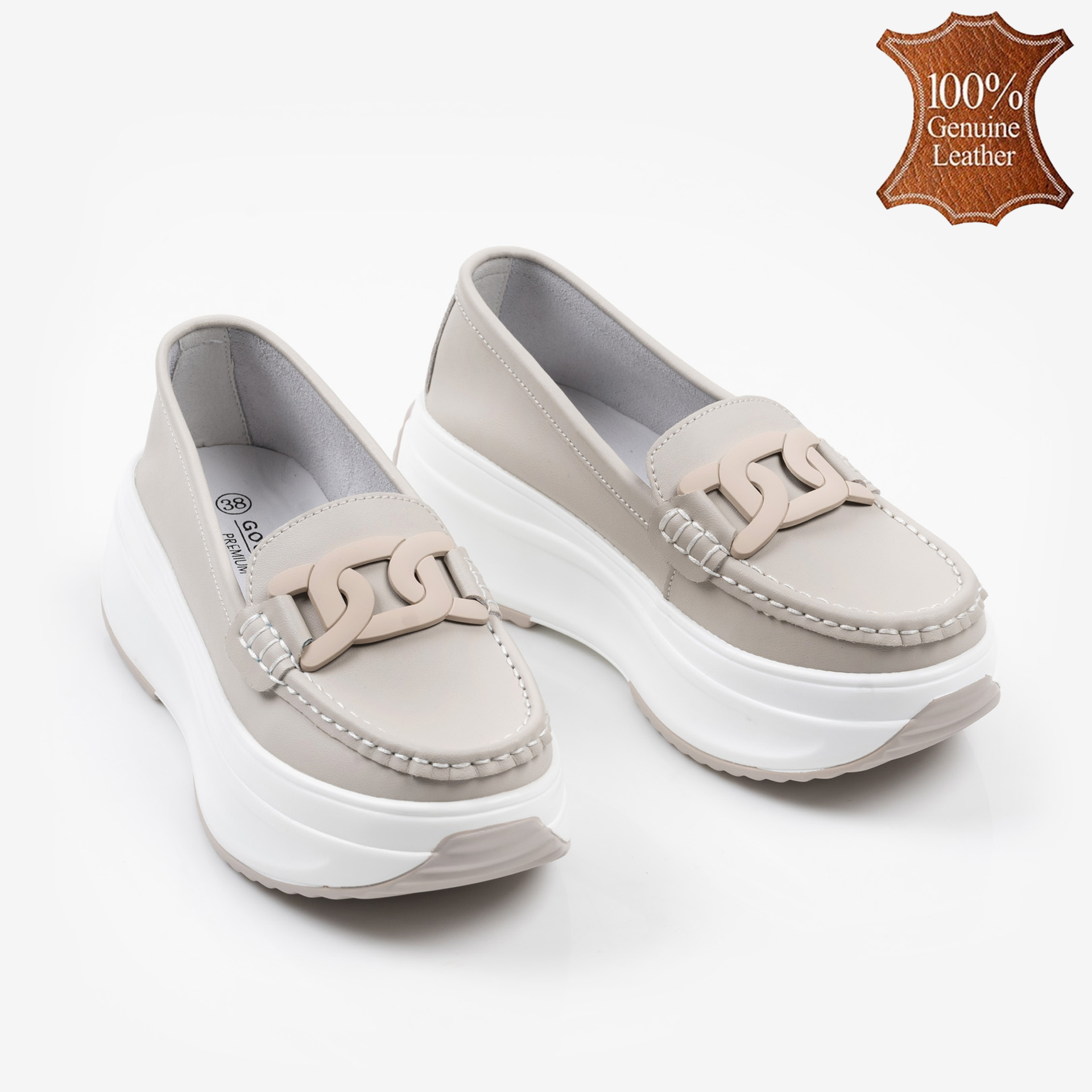 Ако търсите обувки, които да ви държат на върха както в стил, така и в комфорт, тези бежови мокасини са точно за вас! С елегантната си естествена кожа и стабилната платформа, те са като малко облаче под краката ви – меко, леко и готово за всяко приключение. Подходящи както за кафе с приятели, така и за спонтанни танци на улицата. Забравете за компромисите между удобство и шик – тук ги има и двете в едно!