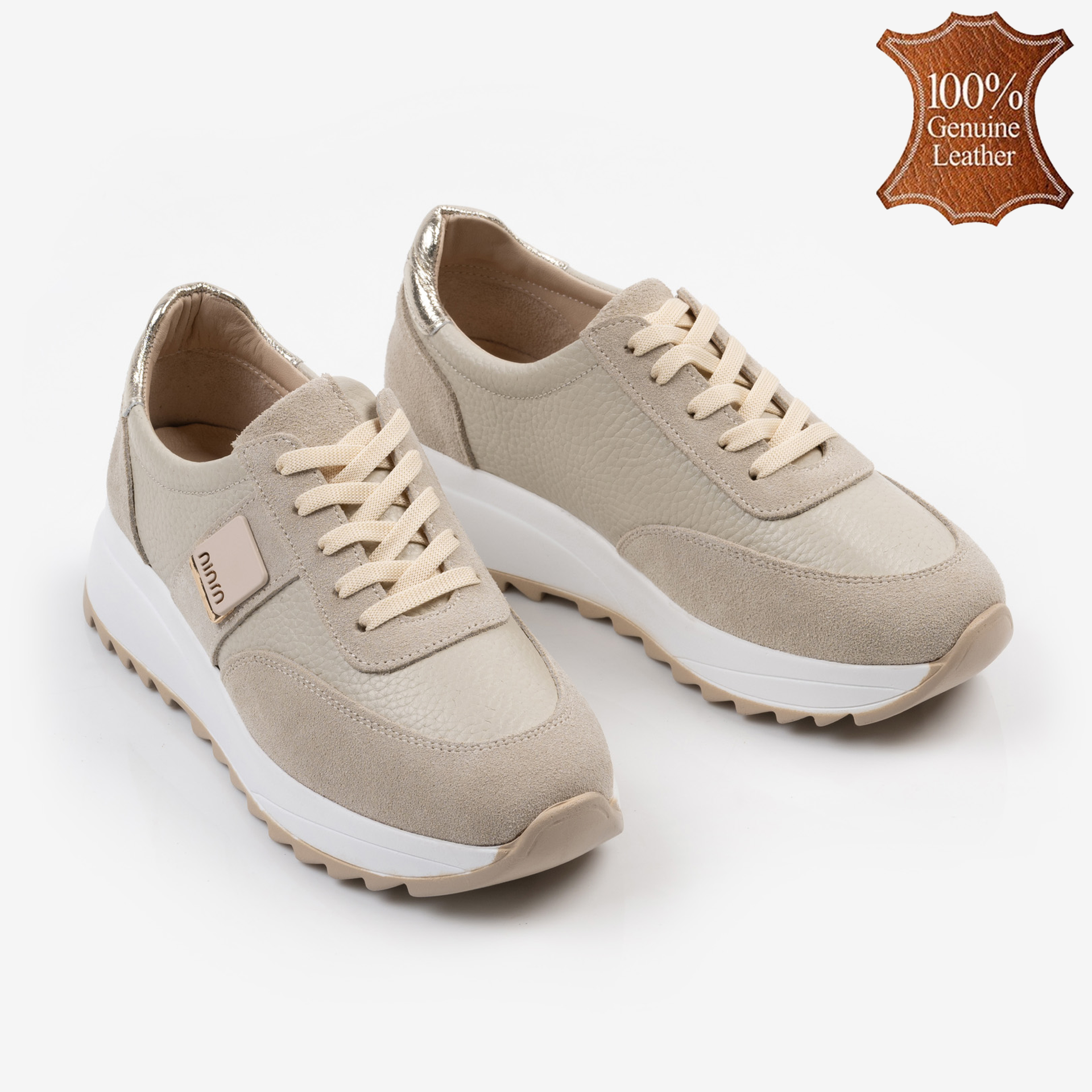 Бежови модерни дамски кожени маратонки с връзки – удобство и стил за всеки ден