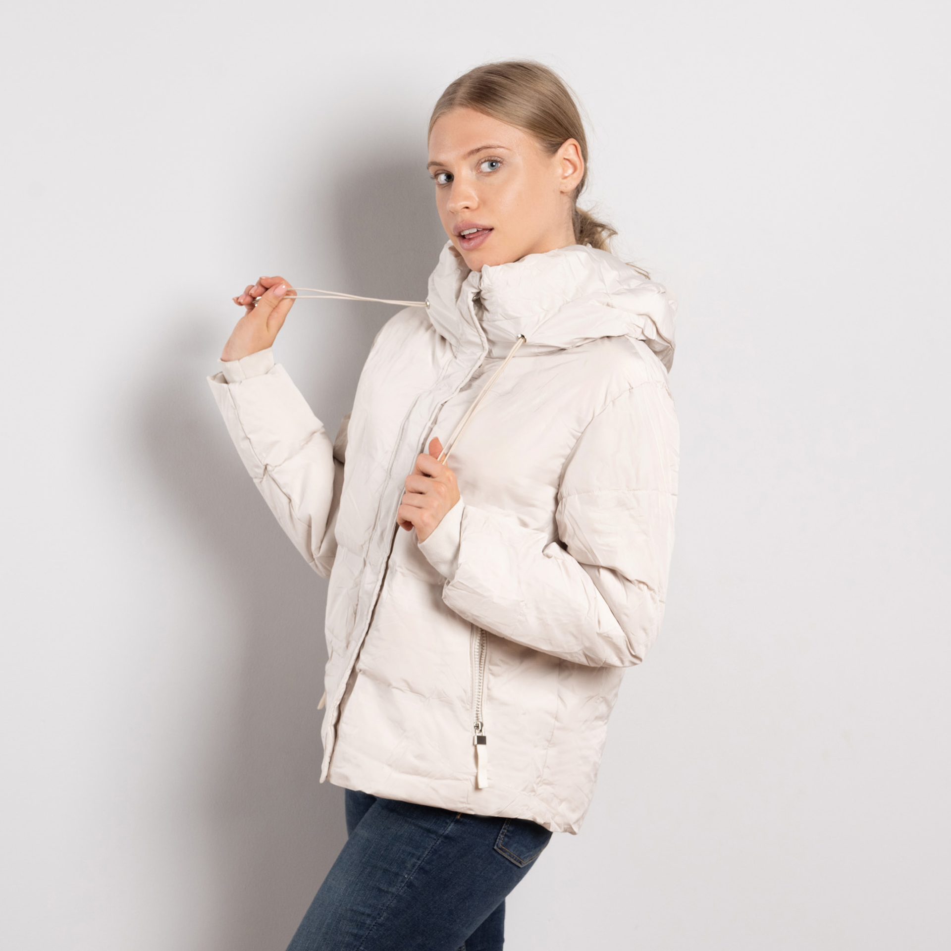 Бежово дамско зимно яке с качулка и връзки – модел Sдо2XL