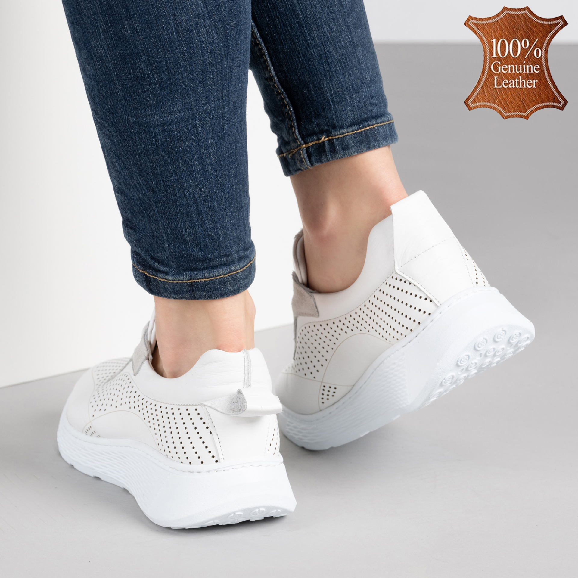 Когато краката ти искат да дишат, а стилът ти да крещи внимание, тези бели кожени красавици идват на помощ! Перфорацията е като малки прозорчета за въздух – супер свежи и удобни, а олекотената подметка ги прави толкова леки, че дори ще забравиш, че ги носиш. Качествената естествена кожа и хастарът от същия материал гарантират, че краката ти заслужават само най-доброто. Идеални за усмивки, разходки и безкрайни приключения в града или парка!