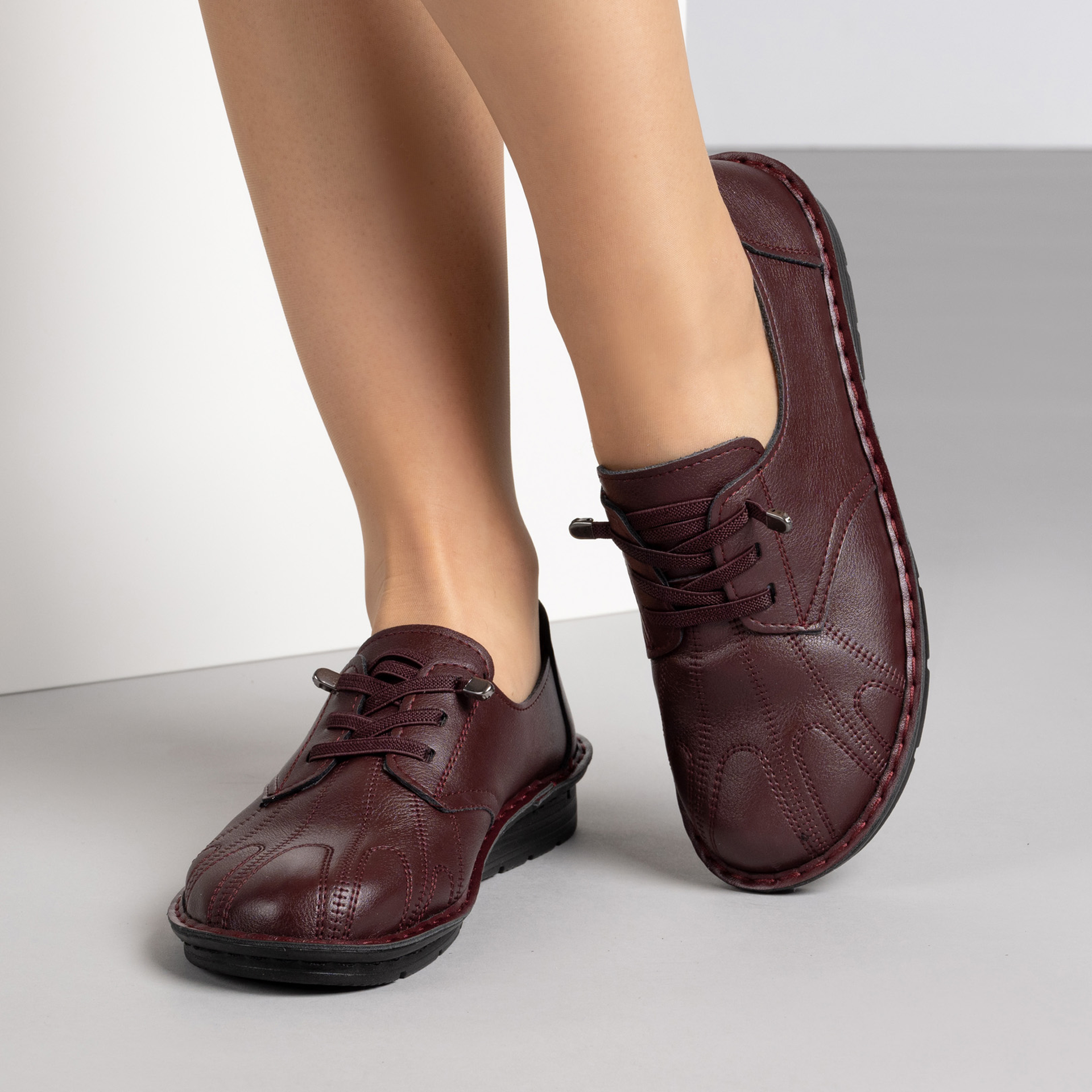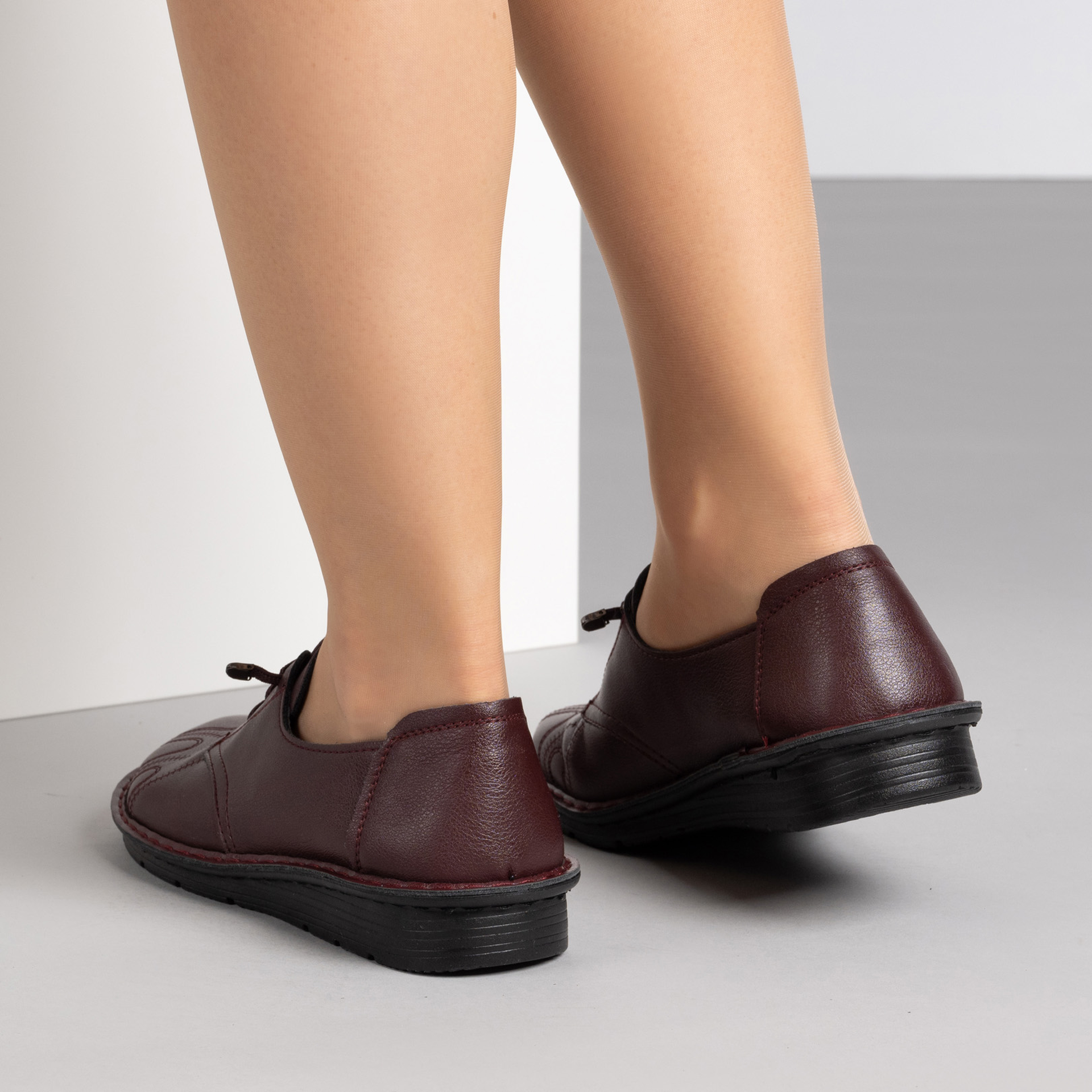 Бордо дамски обувки за всеки ден – шита подметка