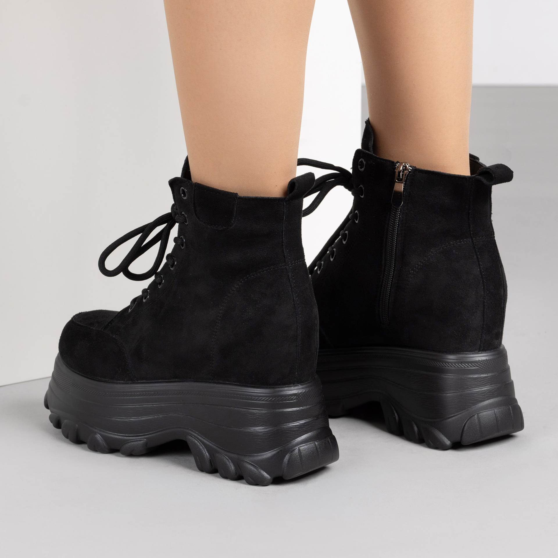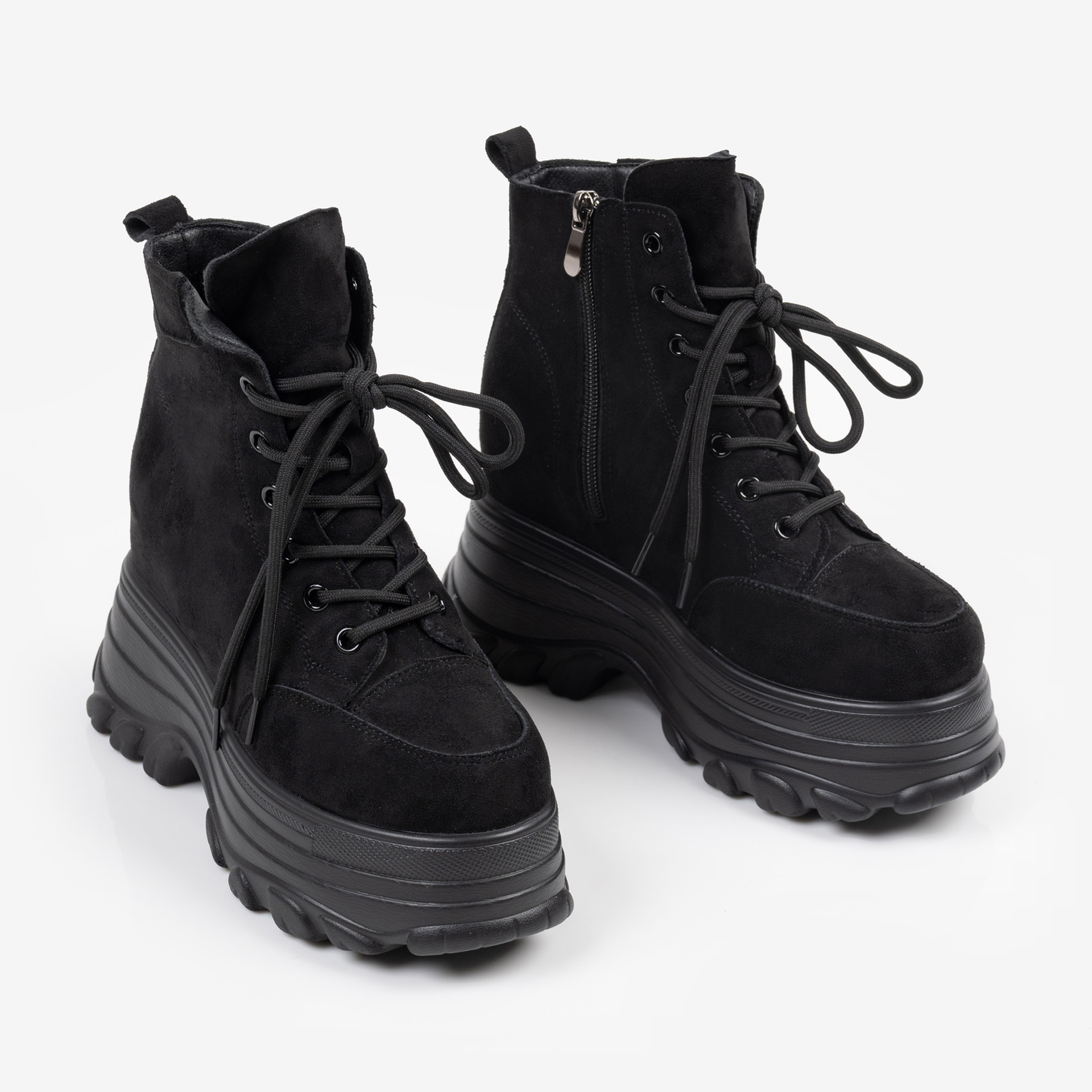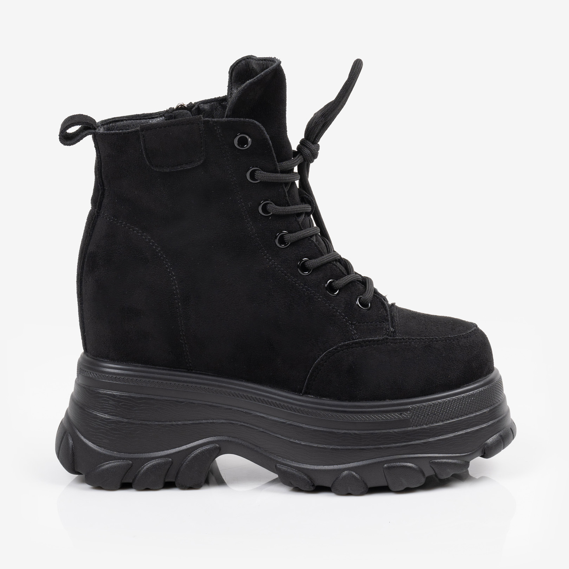 Ако търсиш обувки, които да те издигнат – буквално, то тези велурени боти са твоят нов височинен приятел! Черни, стилни и изработени от еко велур, те съчетават мекота и здравина като супергерой, прикрит като обувка. С удобно хастарче вътре, краката ти ще се чувстват като в облак, а солидната платформа ти гарантира, че ще си по-висока от всички... или поне гледката ти ще бъде по-добра! Перфектни за ден на пазар, но също и за онези моменти, когато искаш да впечатлиш с няколко допълнителни сантиметра. Добави малко смелост към стъпките си и влез в света на комфортната елегантност!