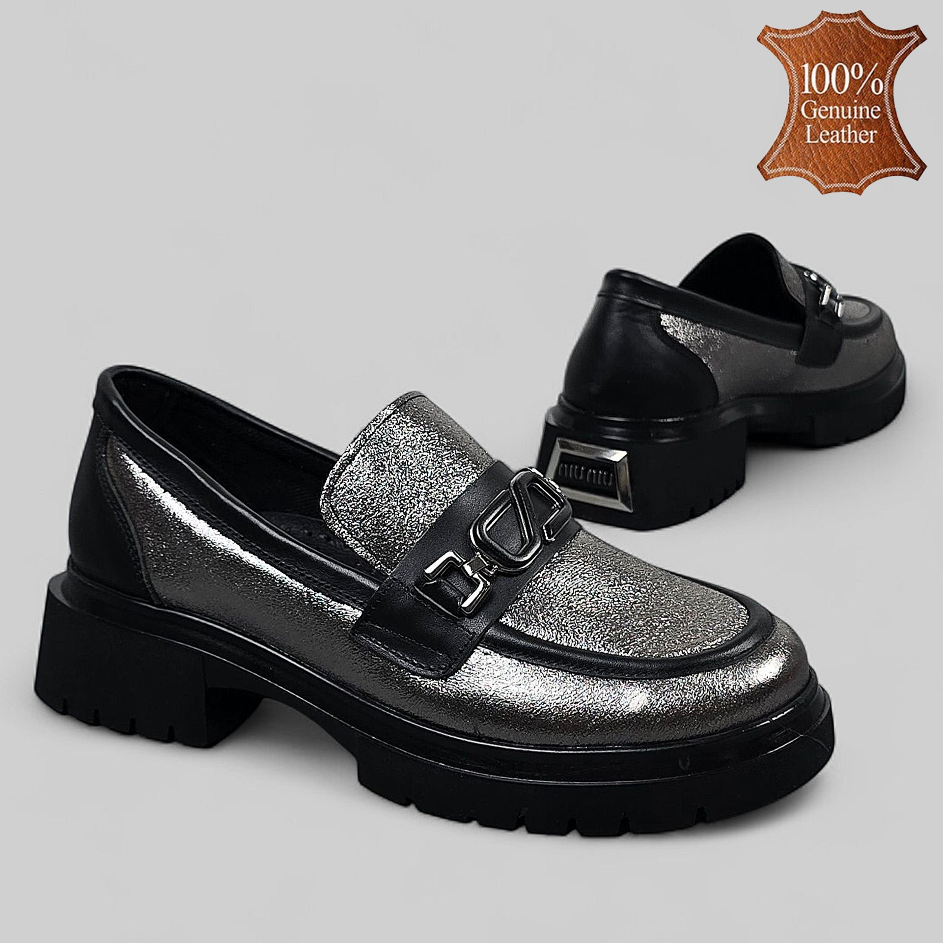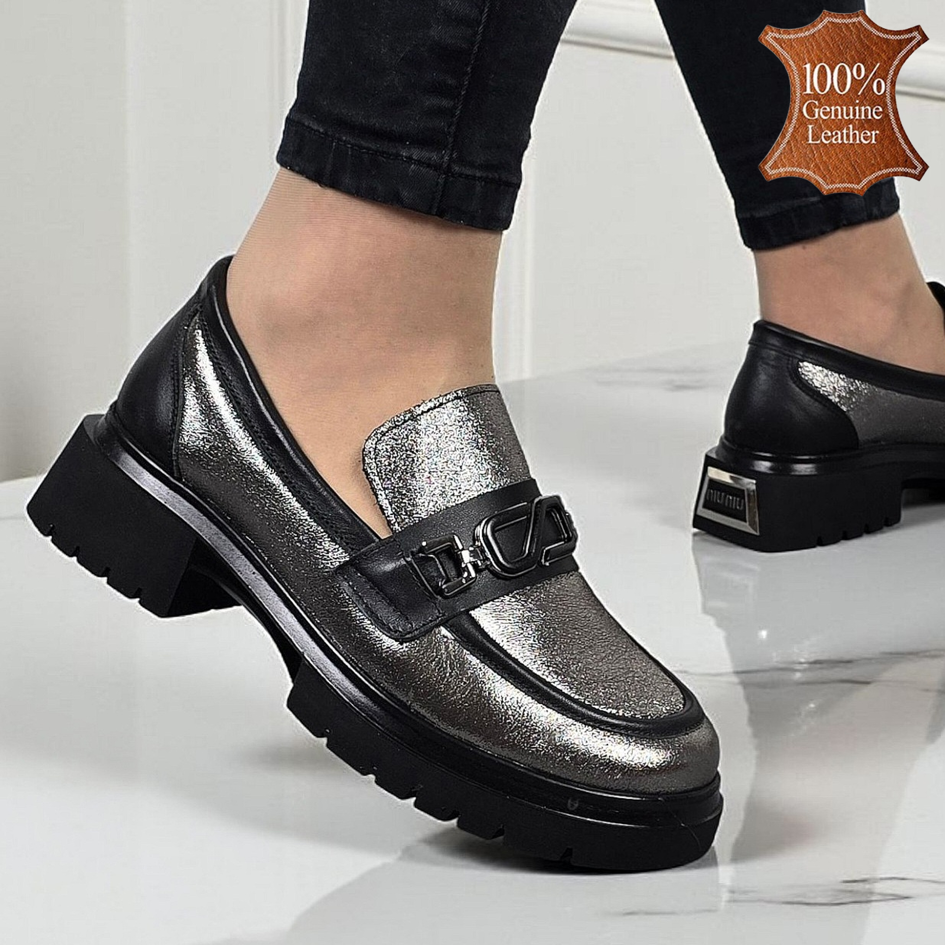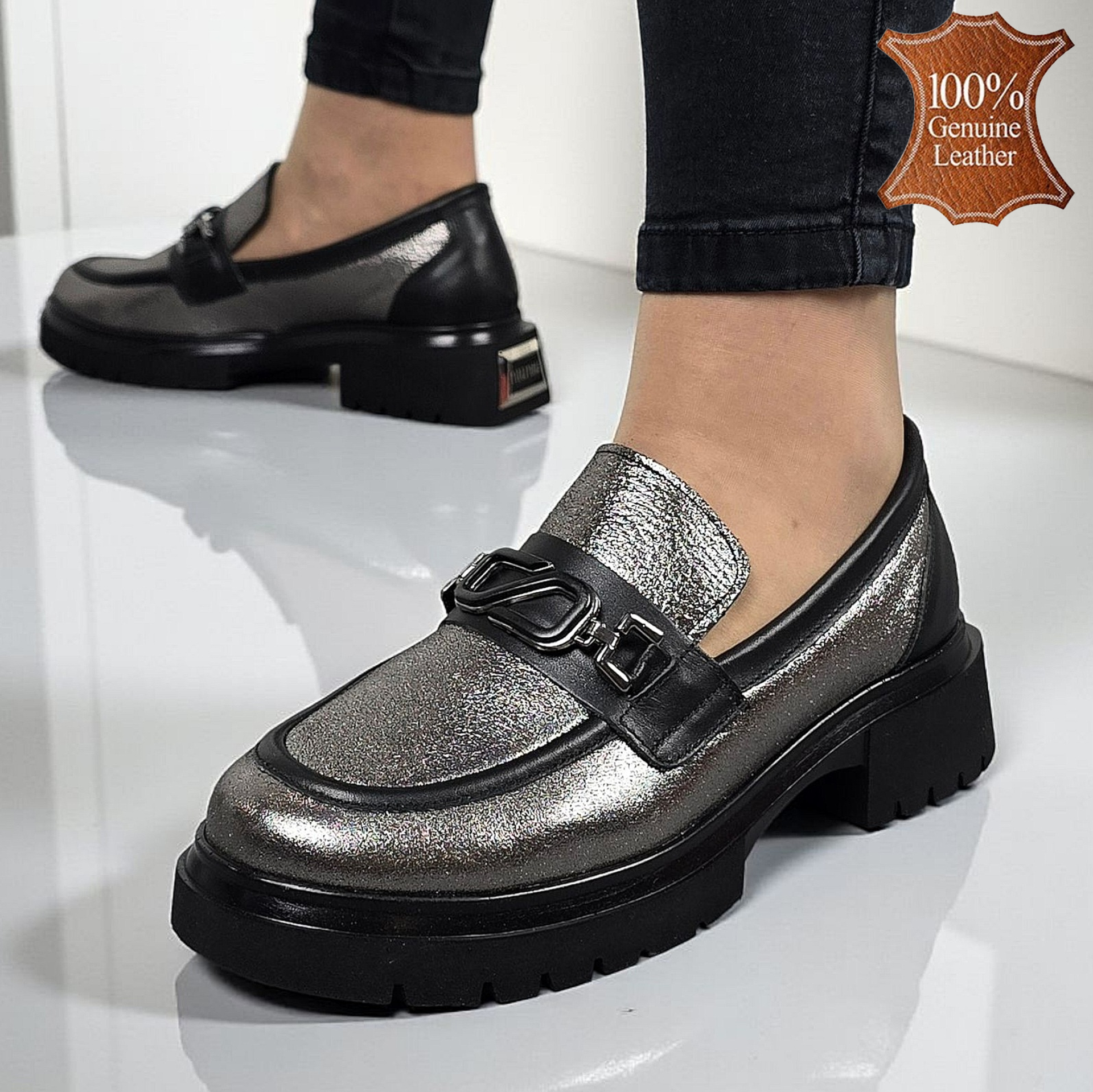 Ако търсите обувки, които да ви накарат да се чувствате като кралица на комфорта и стилa – тези са точно за вас! Сребрист блясък, който казва „Виж ме!“, а в същото време олекотената и ортопедична подметка се грижи краката ви да танцуват през целия ден без да се уморяват. Естествената кожа добавя нотка на изисканост, а здравият грайфер гарантира, че няма да изпуснете нито една стъпка… освен ако не искате! Вземете си ги и се пригответе да събирате погледи и комплименти – с тях дори и дъждът изглежда по-блестящ!