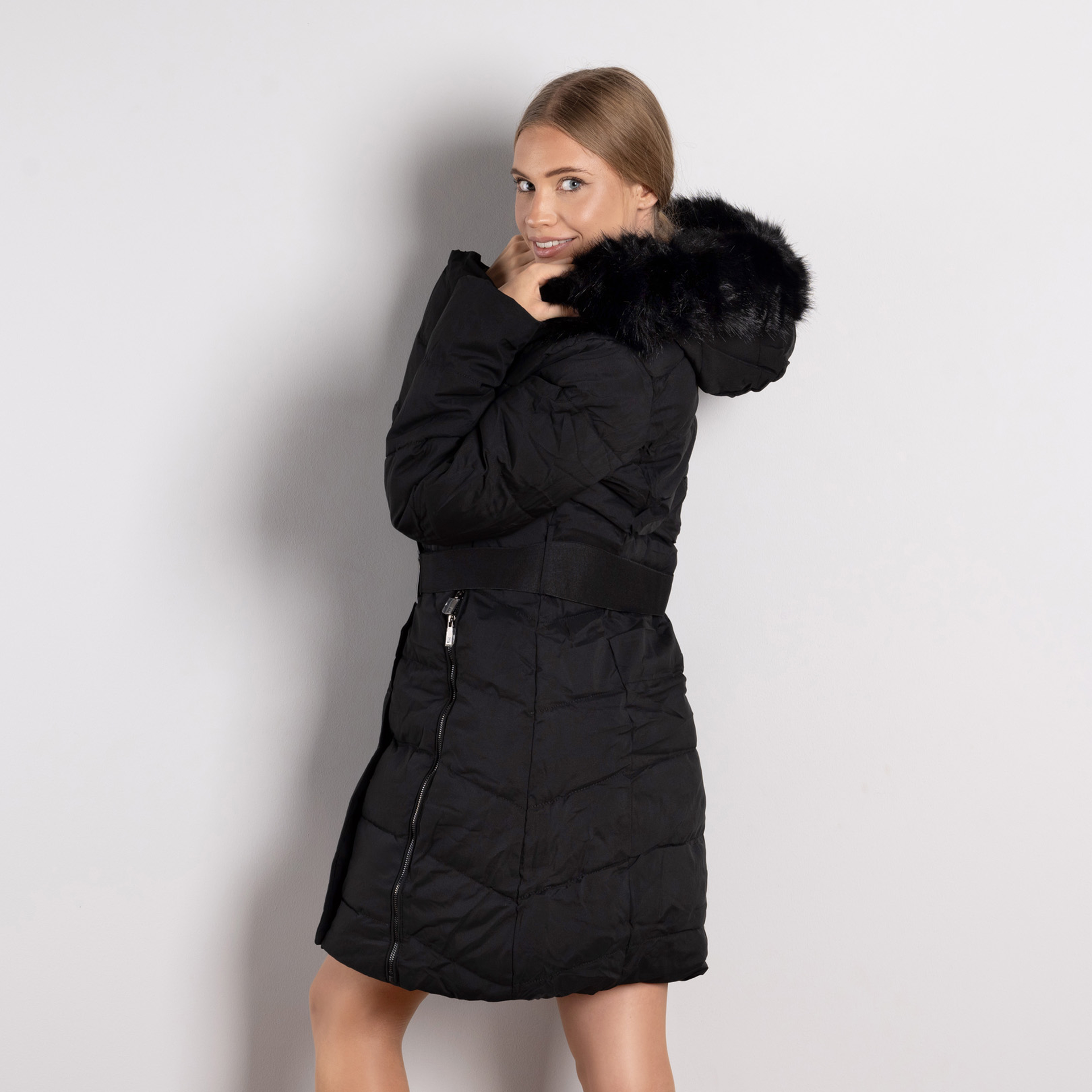 Дамско зимно яке в черно с колан – елегантно и практично