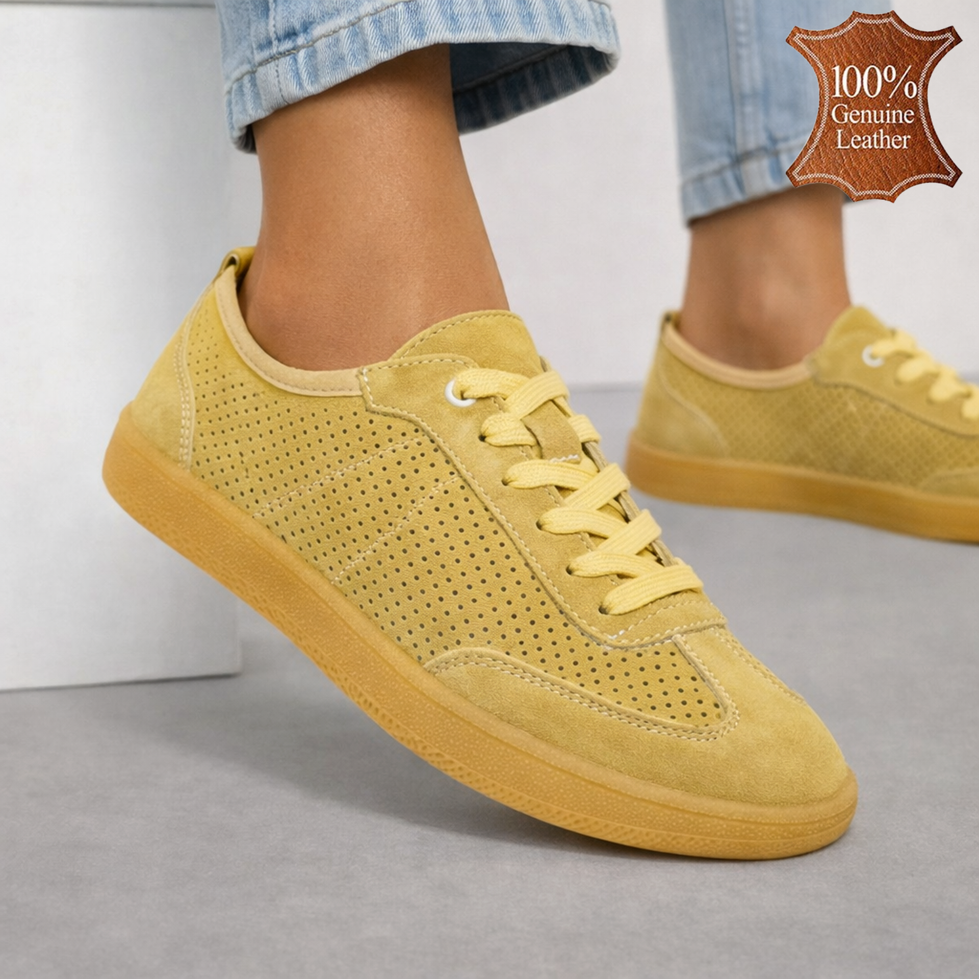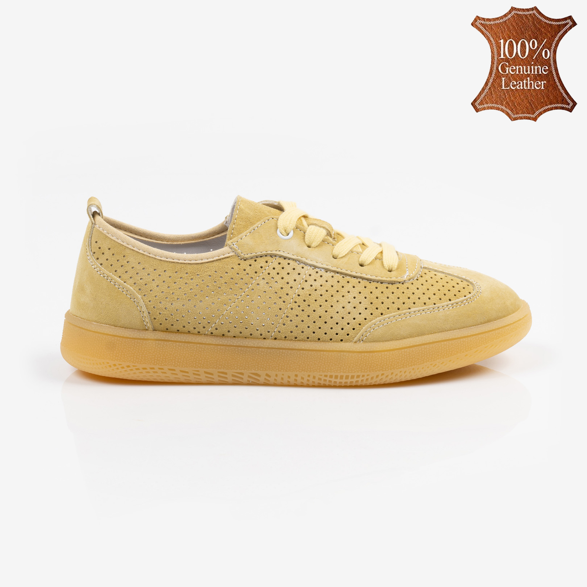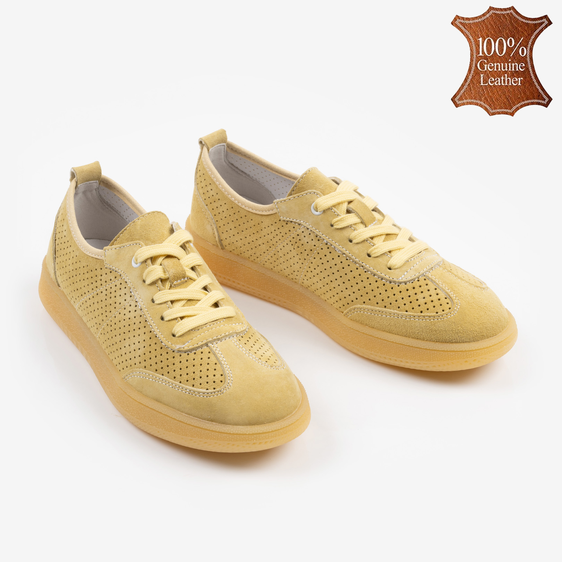 Жълти дамски обувки от естествена кожа с перфорация – меки и удобни
