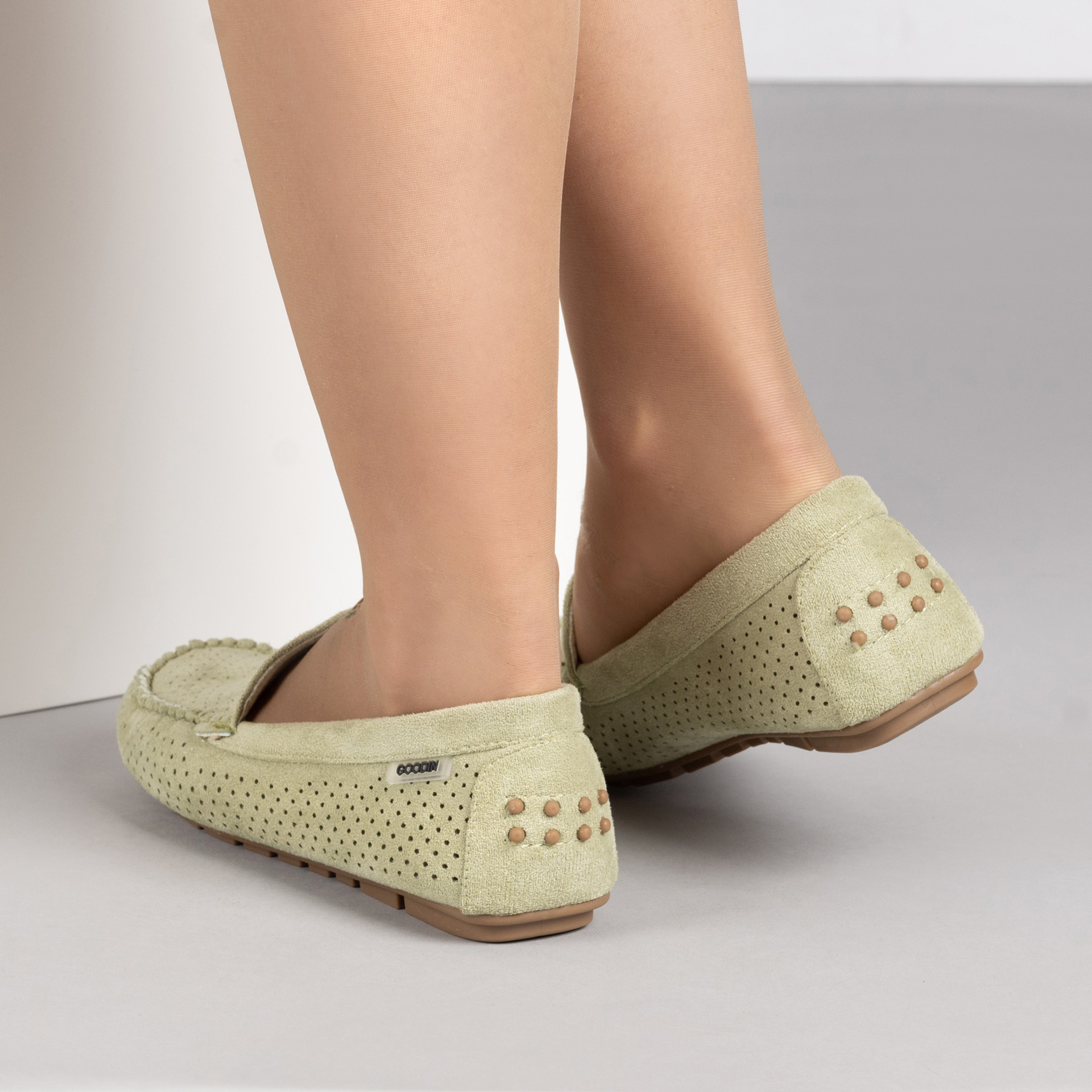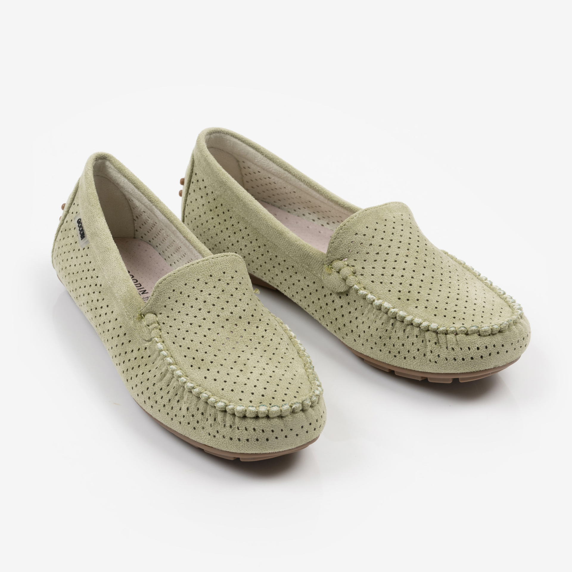 Зелени удобни дамски мокасини със стелка от естествена кожа