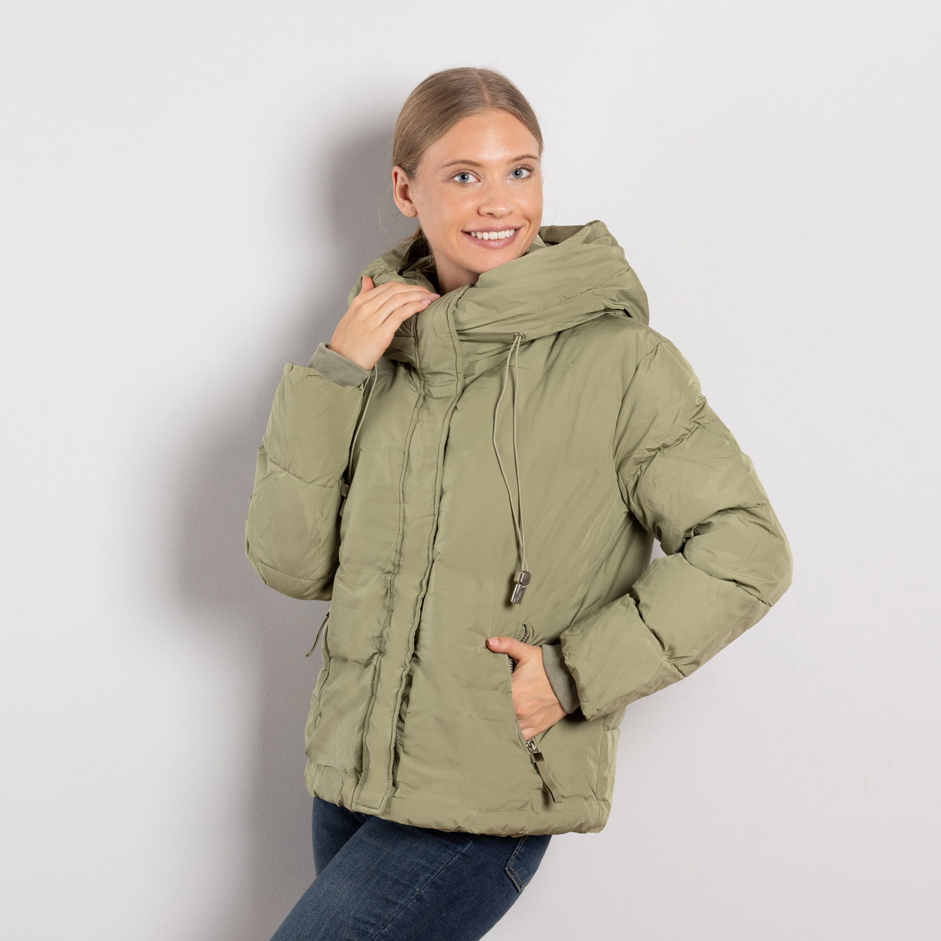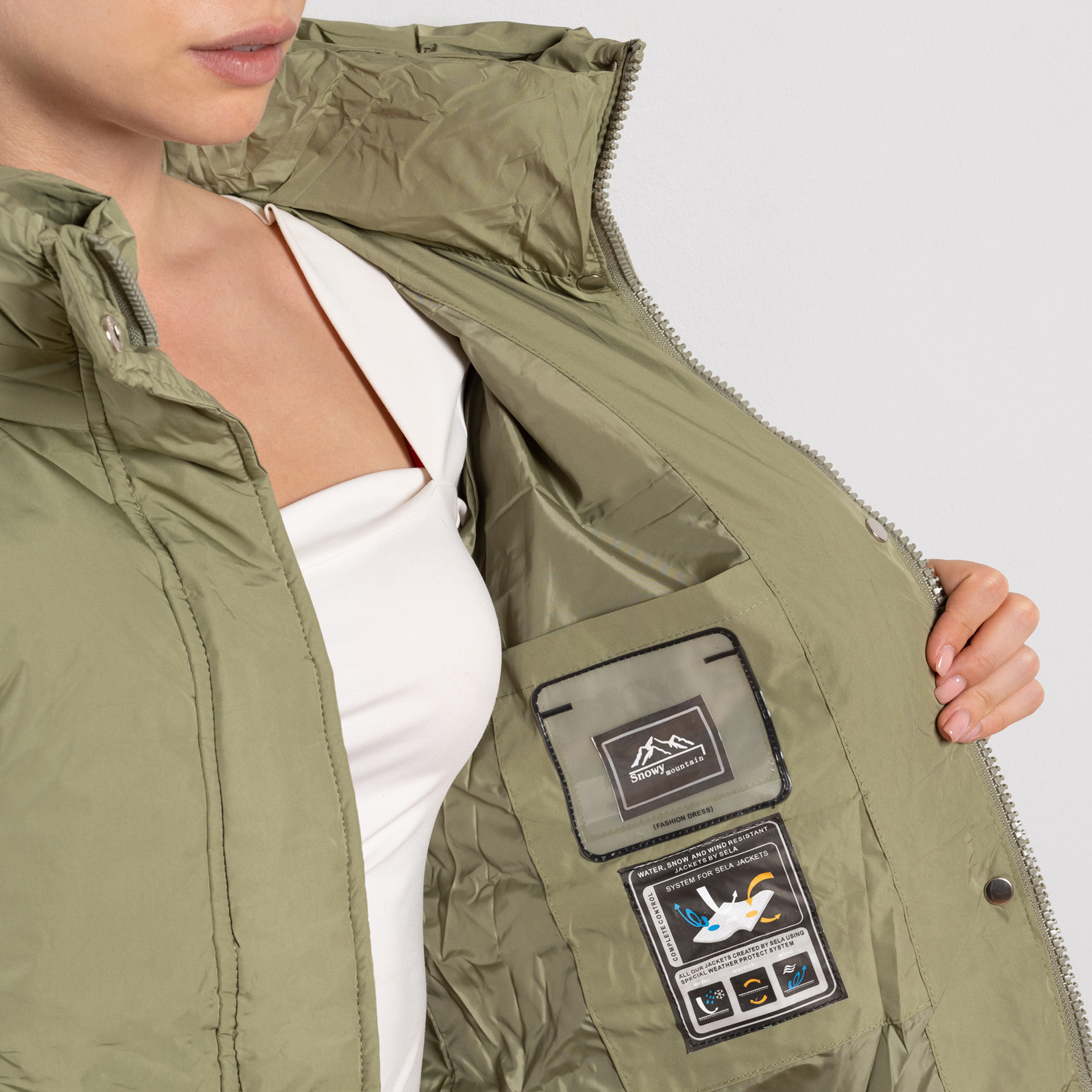 Зелено дамско зимно яке с качулка и връзки – модел Sдо2XL