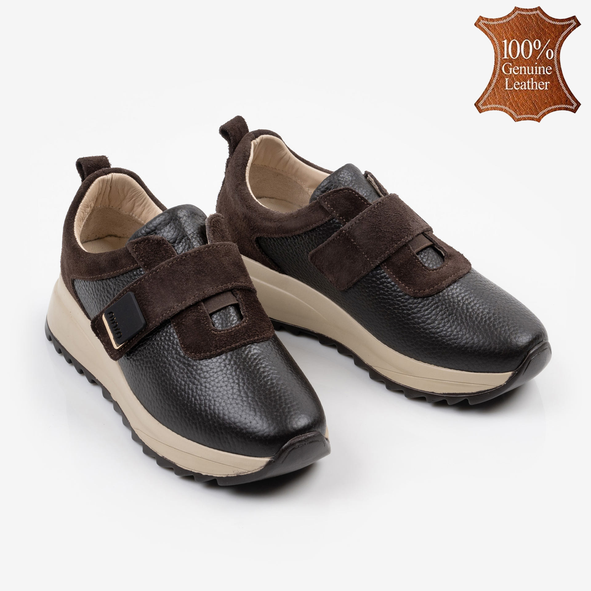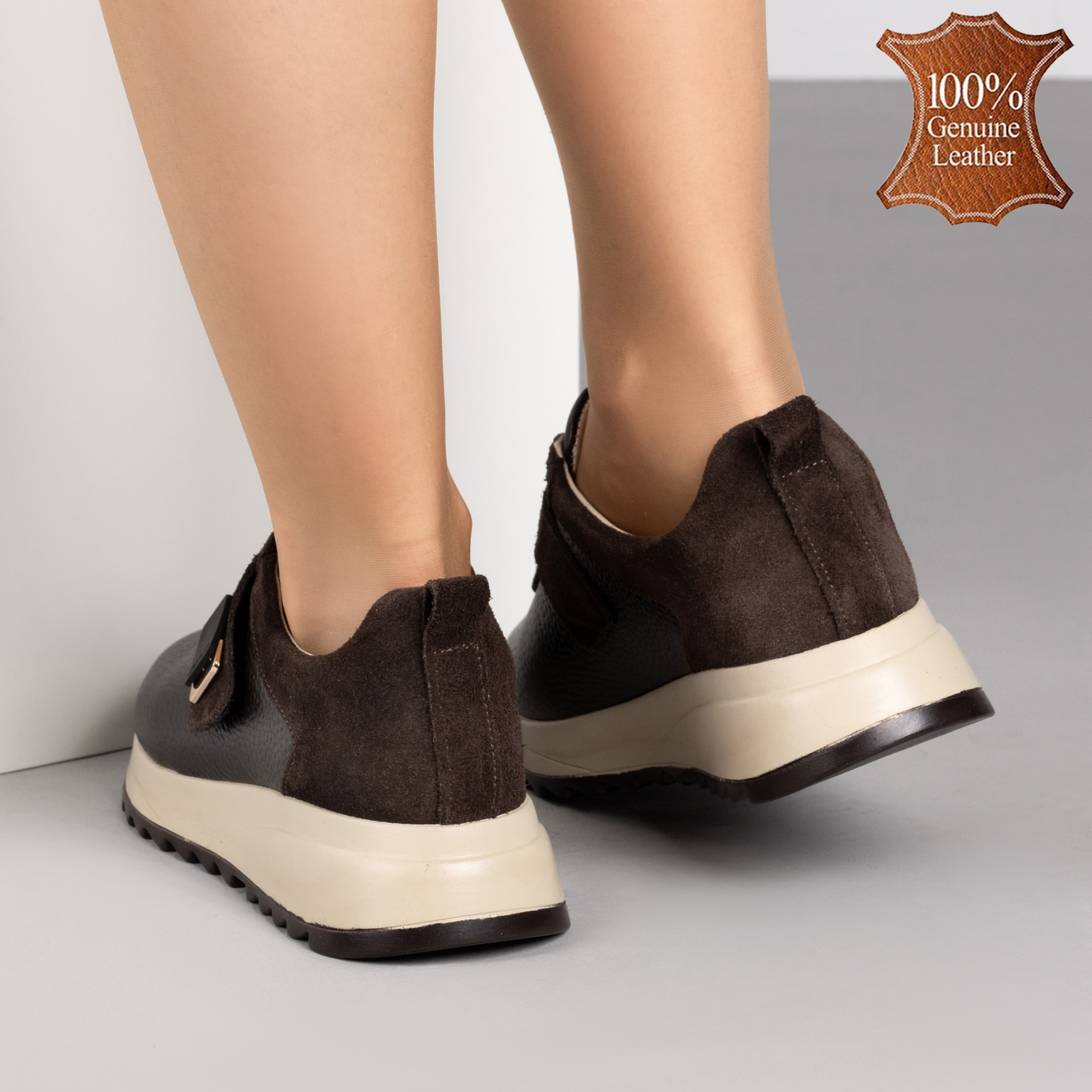 Кафяви дамски кожени маратонки с велкро – удобство и стил за всеки ден