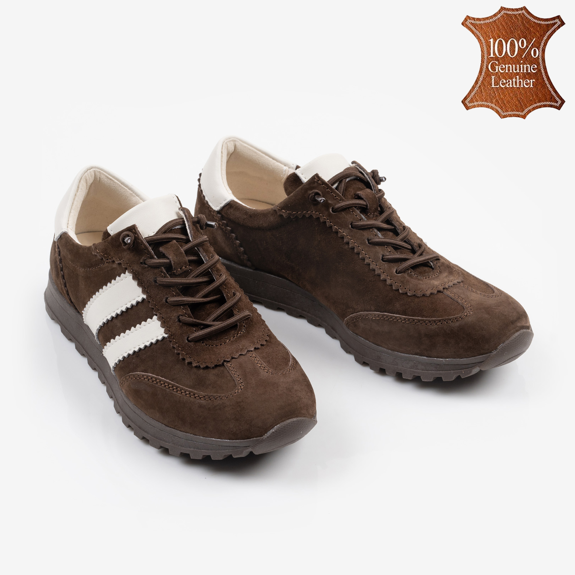 Тези кафяви красавици са готови да поемат всяка крачка с вас – и с комфорт, и със стил! Изработени от естествена кожа, те глезят стъпалата като любимата ви чаша кафе сутрин – топли и събуждащи. Бежовите детайли им придават ретро шик, а стабилната подметка ще ви държи здраво на земята, независимо дали бягате след автобус или след мечтите си. Перфектният избор за дами, които искат удобство без компромиси с визията!