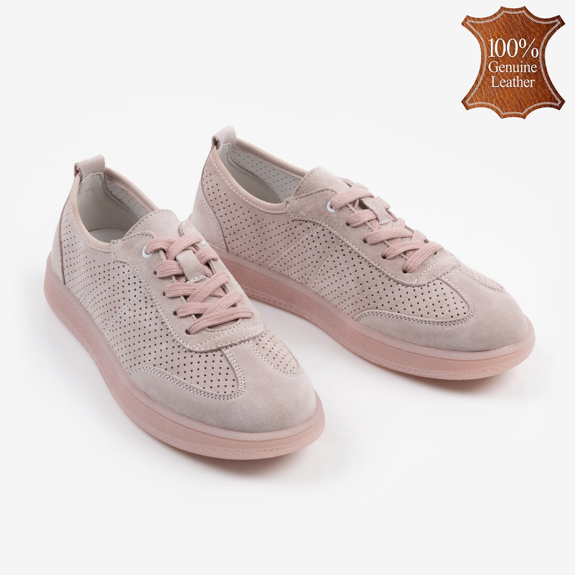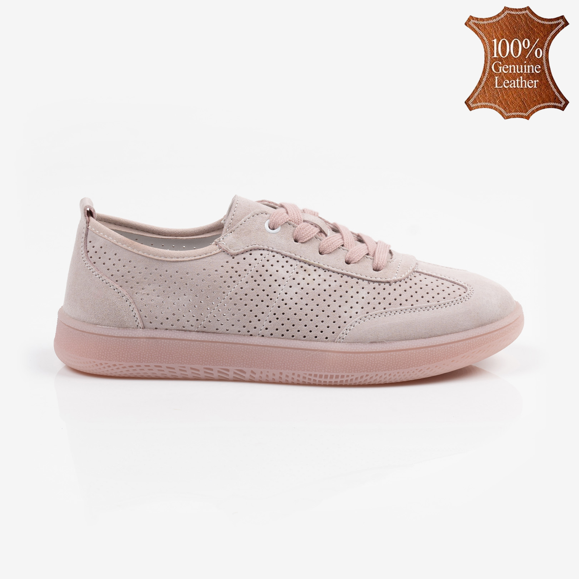 Розови дамски обувки от естествена кожа с перфорация – меки и удобни