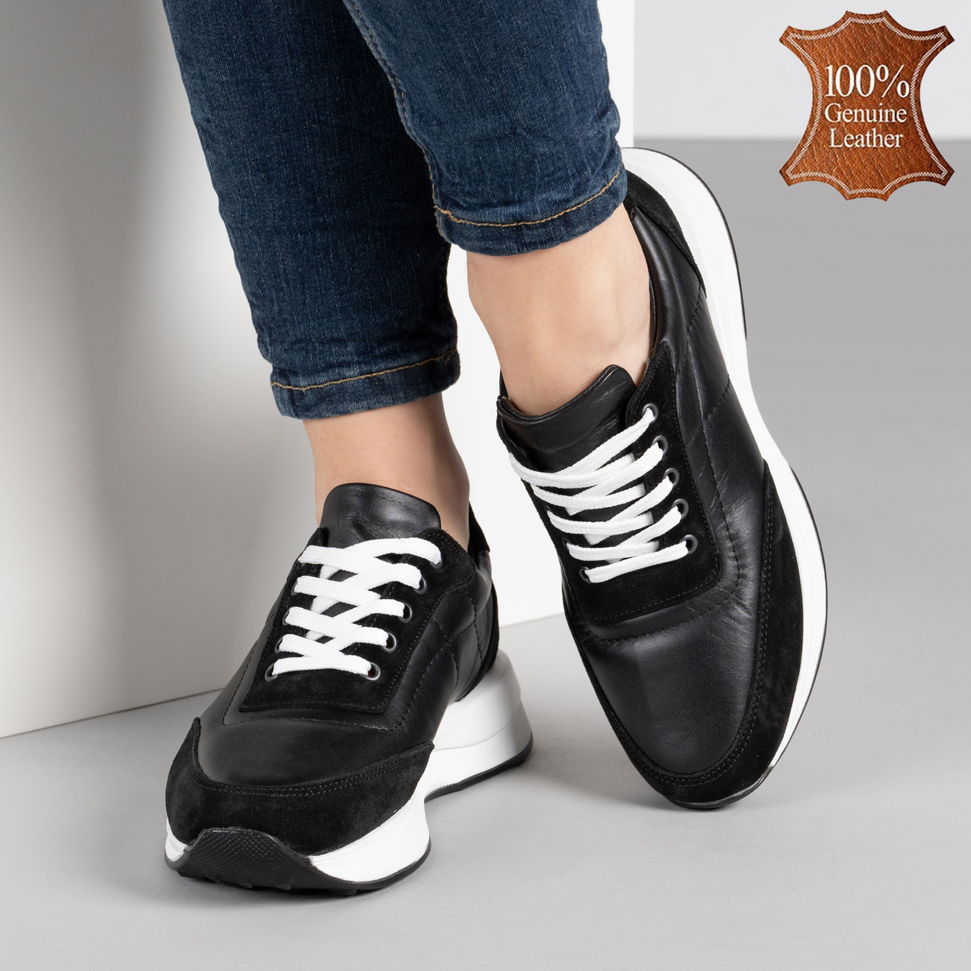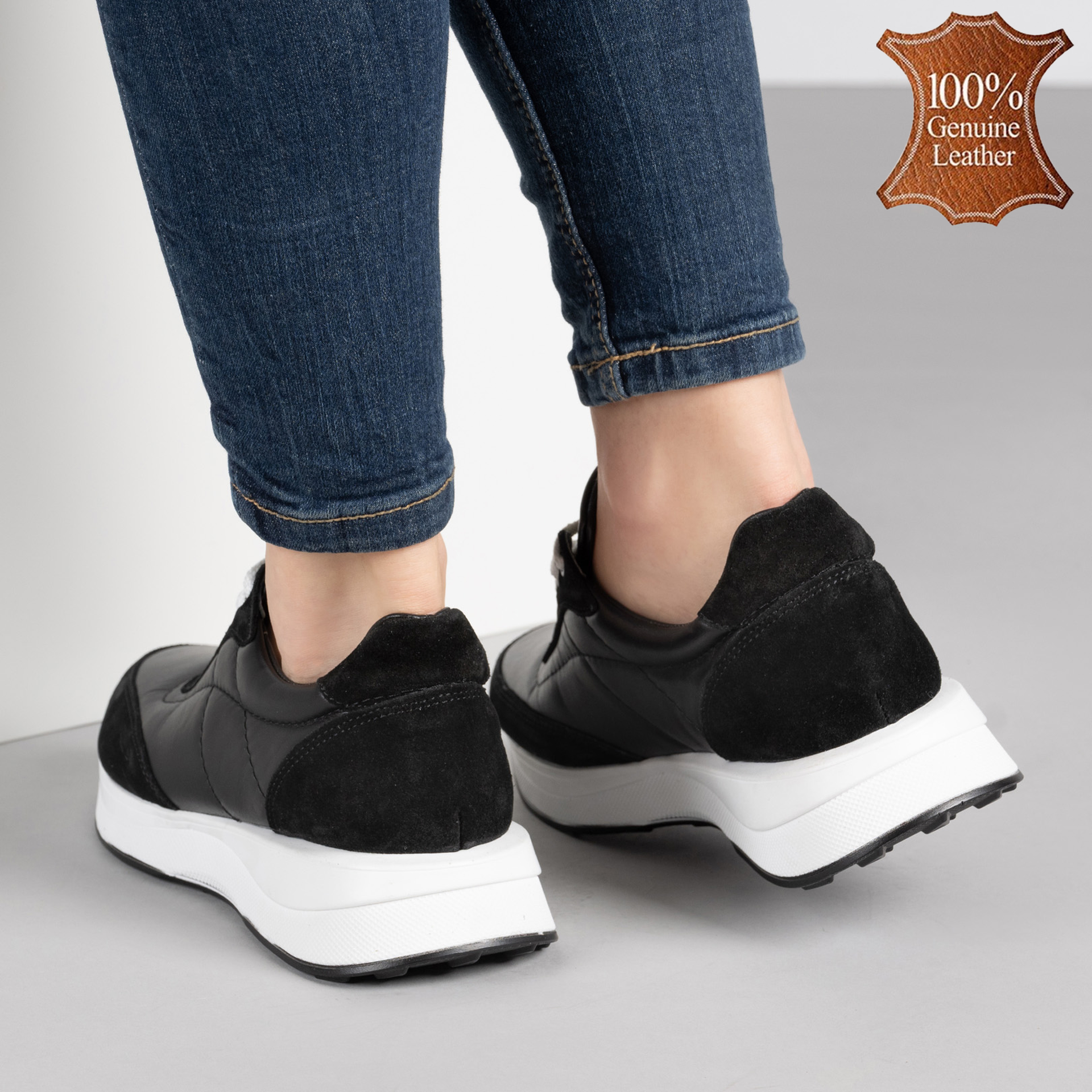 Тези черни дамски маратонки са като удобните ви нови най-добри приятели – винаги готови да ви подкрепят с олекотената си подметка, докато порите града със стил. Изработени от естествена кожа отвън и отвътре, те обещават да глезят краката ви като луксозен СПА център, но без нужда от резервация. Черното никога не излиза от мода, а тези маратонки доказват, че комфортът и елегантността вървят ръка за ръка – или по-скоро – крак за крак!
