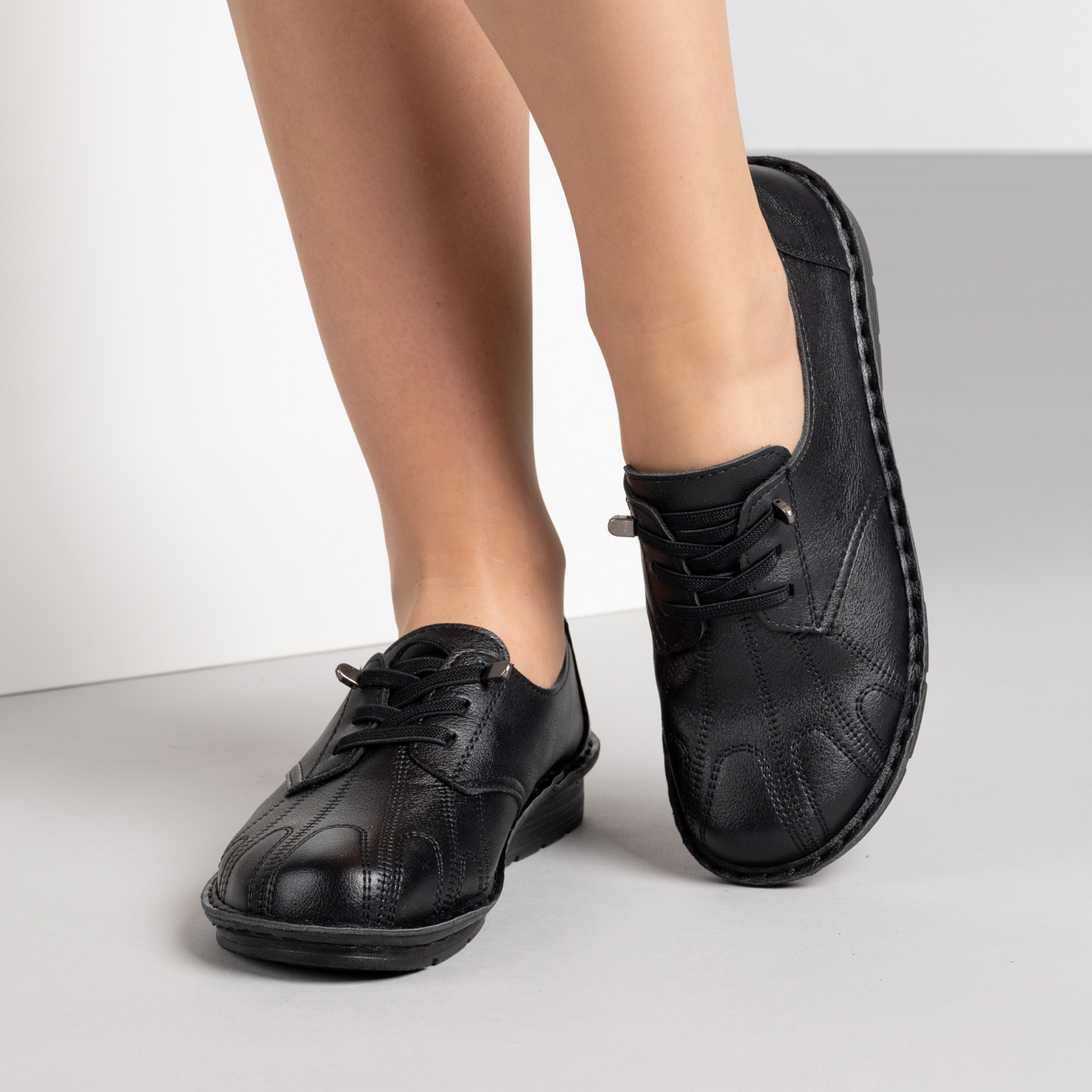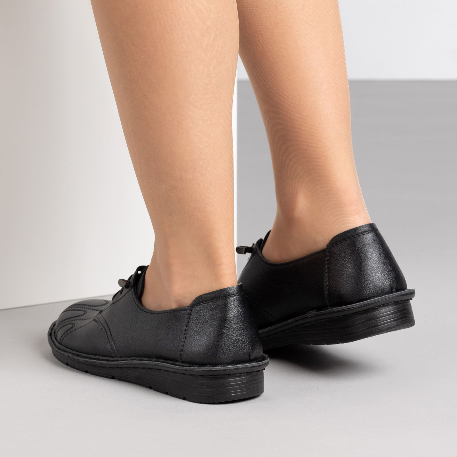 Ако обувките можеха да говорят, тези щяха да казват „Хайде, краката ми са готови за приключения!“ Черни, елегантни и толкова удобни, че бихте ги носили и на лунната разходка... или поне до магазина. Шита подметка, за да не се разплитате и тръгнете с танцови стъпки, еко кожа, защото природата също трябва да се радва на обувките ви. Добавете малко стил и голямо удобство във всяка крачка!