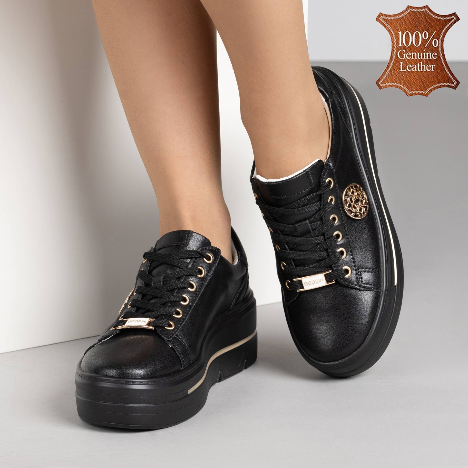 Ако търсите обувки, които комбинират комфорт, стил и малко блясък, тези черни красавици са точно за вас! Изработени от естествена кожа, за да докоснат нежно краката ви, а златистите орнаменти придават онзи „уау“ ефект, който винаги печели комплименти. Подметката им е толкова олекотена, че сякаш ходите на въздушни възглавнички – идеални за дълги разходки или танци до зори. С тези бижута на краката, ще се чувствате като кралица, която знае как да съчетава удобство и шик на една стъпка разстояние!