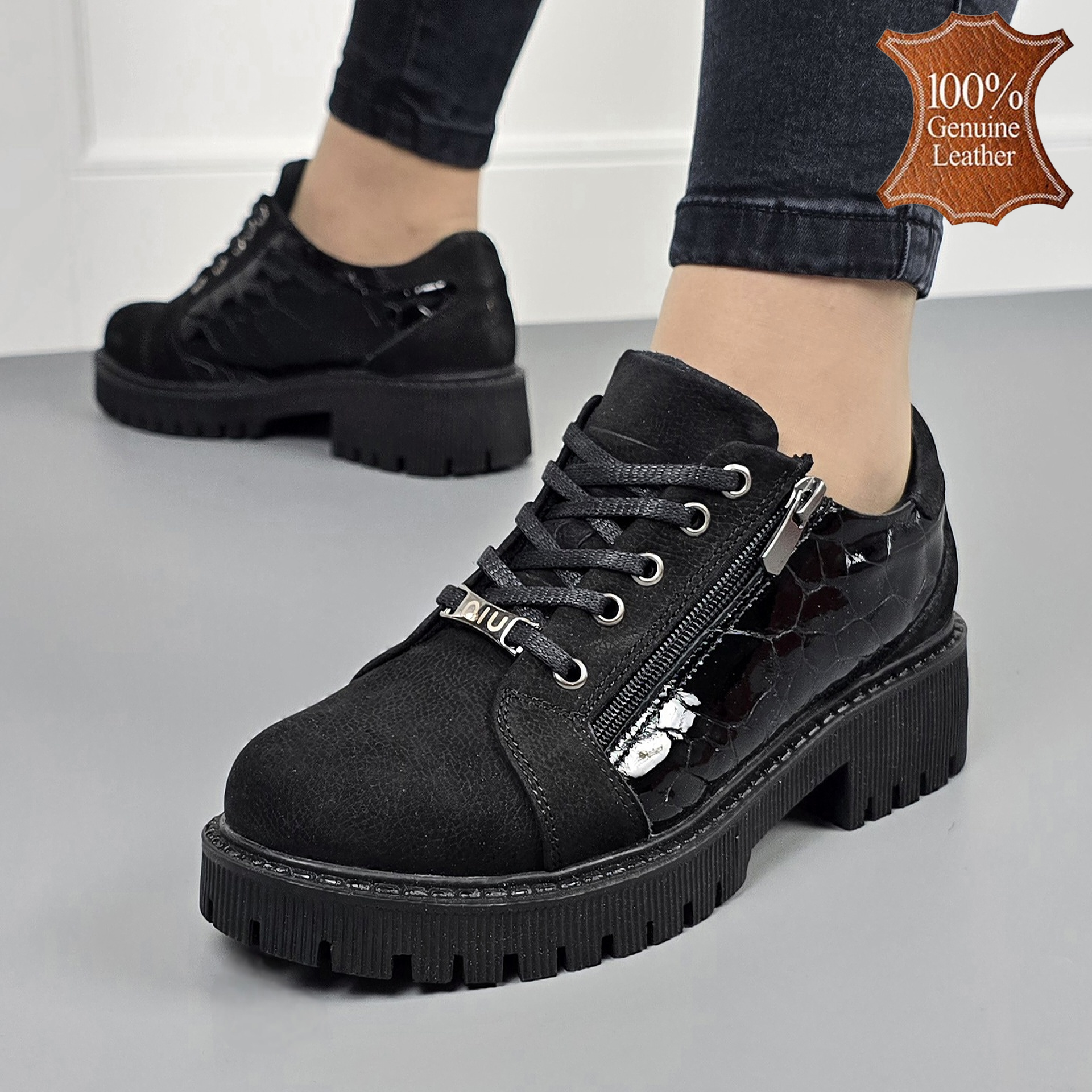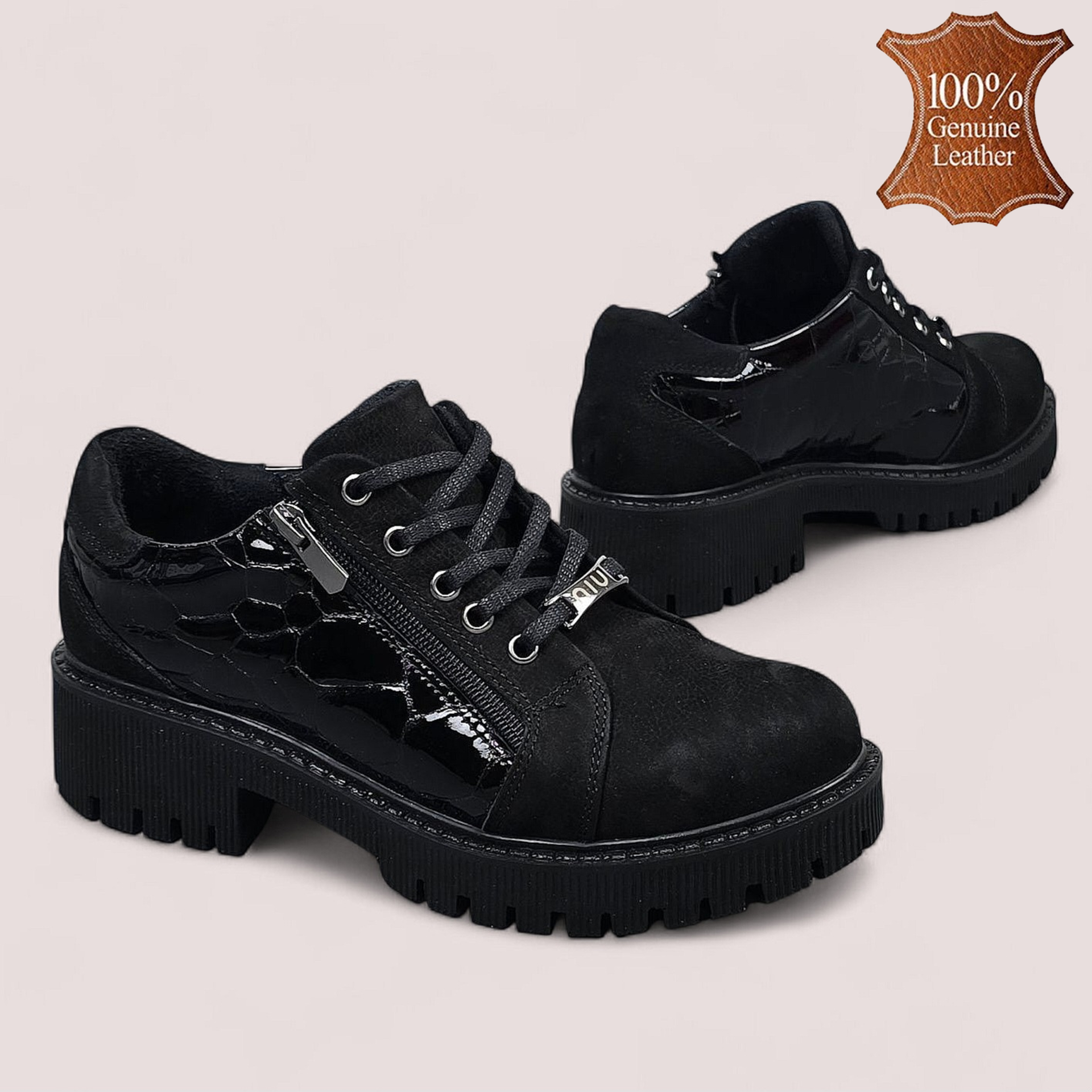 Когато стилът и удобството решат да направят тандем, се раждат тези черни красавици! Естествената кожа ги кара да изглеждат като рок звезди, а ортопедичната олекотена подметка се грижи за краката ти железно – сякаш ходиш върху пухкави облачета. Страничният цип не само добавя чар, но и ти спестява време – защото кой обича да си играе с връзки? Перфектни за всеки ден, когато искаш да бъдеш неотразима, без да жертваш комфорта!